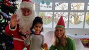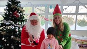 As the children stepped through a magical curtain, they entered a secret train tunnel that led them into a land of snowy wonder. Waiting to greet them were Father Christmas and his cheerful Elf, seated beside a magnificent Christmas tree that filled the room with festive charm.